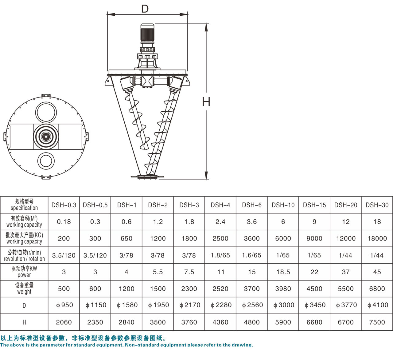 雙螺旋錐形混合機(jī)(雙螺旋混合機(jī))可廣泛被廣泛用于化工、電池原料、顏料、涂料、染料、農(nóng)藥、制藥、食品、飼料、添加劑、耐火材料、新型材料、電子塑料、橡膠、陶瓷、化肥、冶金、礦山、干粉砂漿、特種建材等各行業(yè)的粉體與粉體,液體與液體、粉體與液體的混合、固-液(即粉體內(nèi)添加液體)混合。該機(jī)對(duì)混合物適應(yīng)性強(qiáng):對(duì)熱敏性物料不會(huì)產(chǎn)生過(guò)熱現(xiàn)象;對(duì)顆粒物料不會(huì)壓潰和磨碎;對(duì)比重懸殊和粒度不同的物料組成的混合不會(huì)發(fā)生分層離析現(xiàn)象;對(duì)粗粒、細(xì)粒和超細(xì)粉等各種顆粒、纖維或片狀物料的混合也有較雙螺旋錐形混合機(jī)屬容器固定式混合機(jī)。雙螺旋錐形混合機(jī)與其他混合機(jī)相比較具有裝機(jī)功率低,對(duì)混合物料適應(yīng)性廣不破壞混合物料等優(yōu)點(diǎn)。對(duì)熱敏性物料不會(huì)產(chǎn)生過(guò)熱,對(duì)顆粒物料不會(huì)壓饋和磨碎,對(duì)比重懸殊和粒度不同的物料混合不會(huì)產(chǎn)生分層離析現(xiàn)象,對(duì)粗料、細(xì)料和超細(xì)粒(納米級(jí))的混合也有良好的適應(yīng)性。